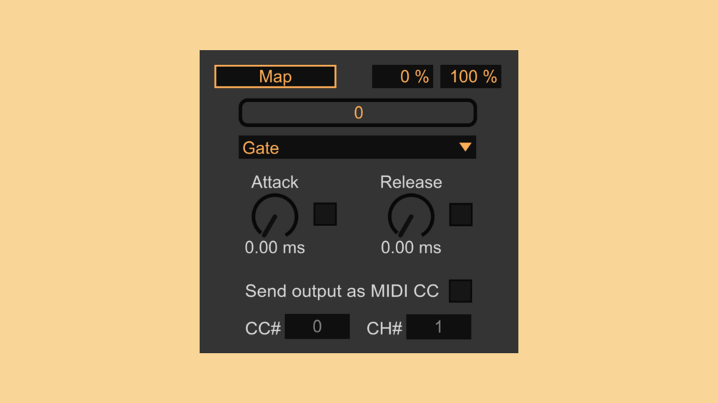 - Map the output to any parameter using the Map button, or enable "Send as MIDI CC" (or both).